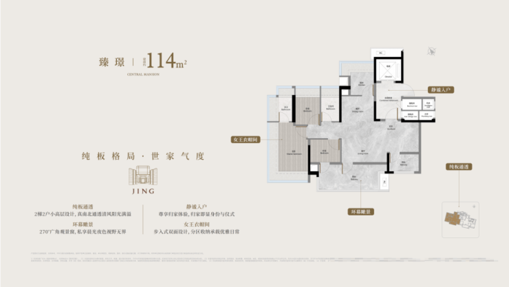140㎡内主卧阅璟台则给到18~19㎡空间。哪怕大床长2.2米,过道仍宽敞。
