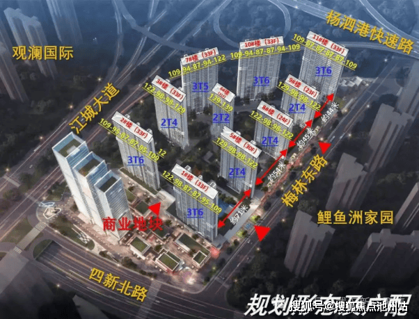 5、项目东侧是江城大道、北边是杨泗港快速通道,都是城市快速路,挑选楼栋和楼层时要多现场考察。