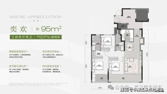 建面约95平三房两卫,优化后约107%的使用率