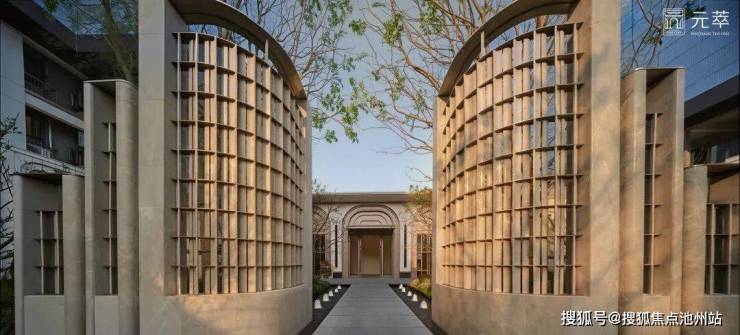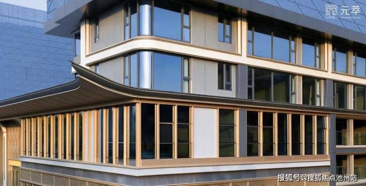 建筑立面以现代公建化手法为基底,巧妙融合金属铝板、玻璃幕墙与天然石材,萃取千年“仪门”及贡院古建筑拱门的经典元素,并融入国际前沿审美中的扎哈曲线立面设计。
