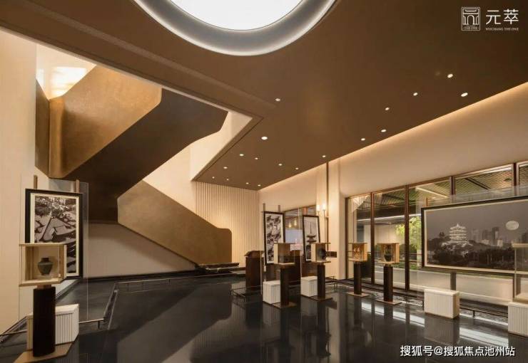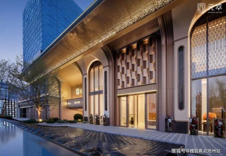 从门口开始,项目就拿出了非遗级别的手工艺屋顶飞檐、纯古铜鎏金水波纹饰面,由数十位非遗匠人历经反复錾刻淬炼而成。