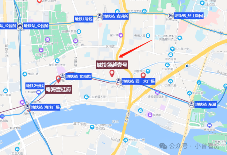 广州城投·东园公馆项目位处在东湖与北京路之间,靠近地铁站团一大广场,位置可以说是相当好。