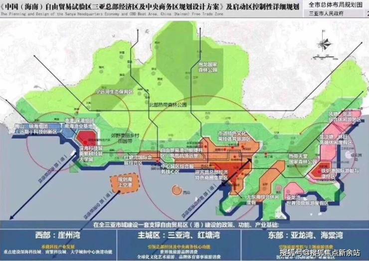 红塘湾形成“双核三带,五区六轴”整体结构,与三亚湾一并定位为主城区,引领总部经济及中央商务核心功能区,自由贸易港的世界门户,未来发展与高度指日可待。