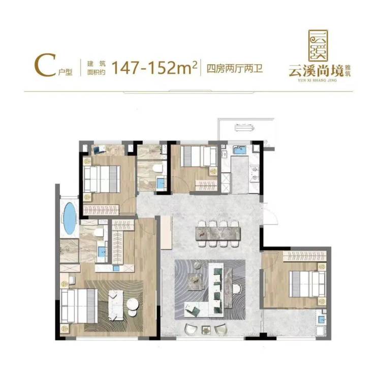 约147㎡王炸户型——4房2厅2位,近14.5米大面宽满足生活大师对日常的一切想象