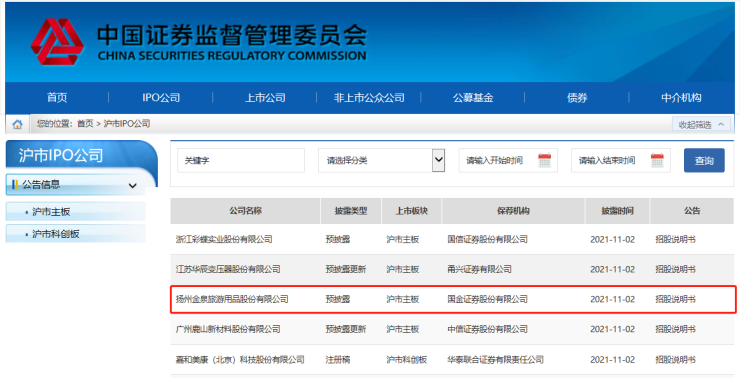 据证监会官网显示,近期扬州金泉旅游用品股份有限公司递交招股书,冲击沪市主板。