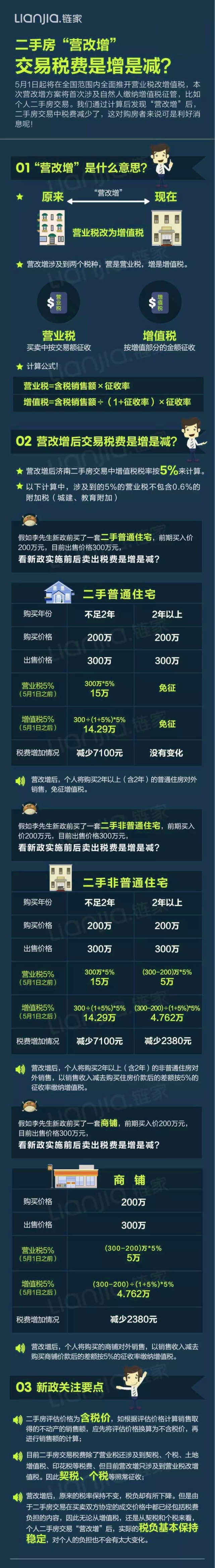 营业税改增值税已经全面施行,在二手房交易税费方面,营改增扮演者哪种角色,对二手房交易是利空还是利好,让我们跟随贝壳济南站的脚步,在从数字角度出发分析一下吧。