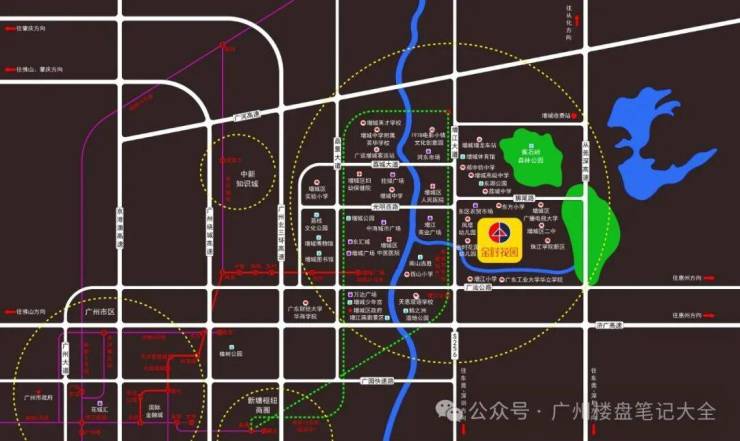 往西:荔城大道、光明西路、广汕公路直达荔城、朱村科教城板块,10分钟可接济广高速45分钟直达天河