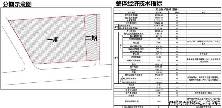 据了解,项目分为二期建设,总建筑面积217512.65㎡,计容建筑面积135282.20㎡,配建一所6班幼儿园和养老服务用房,整体容积率2.4,住宅户数1200户。