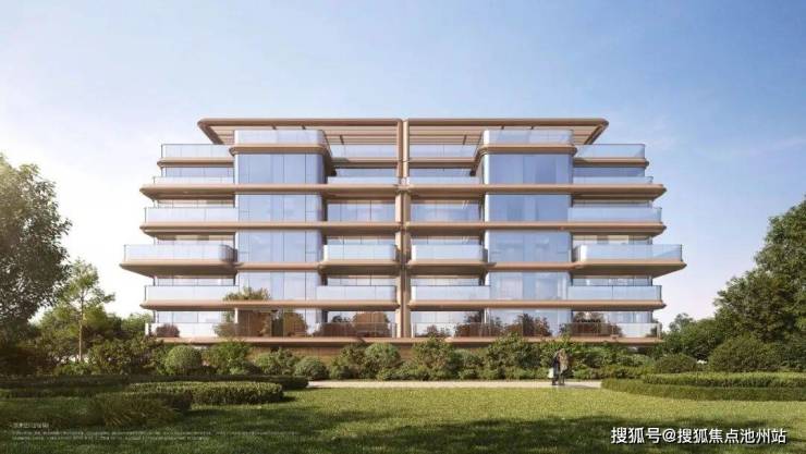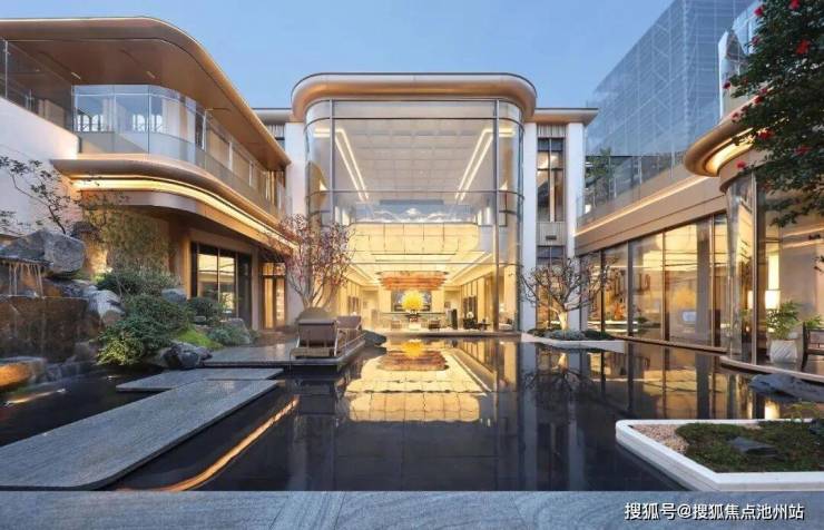叠墅的外立面则是,采用四面铝板+石材+曲面玻璃的豪宅配置。以“流云曲幕”为设计理念,香槟色金的铝板搭配大面曲面玻璃,颜值很高。