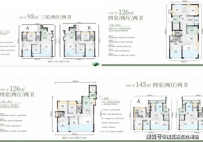 【主力户型】建面约89㎡/98㎡/113㎡/126㎡/143㎡,得房率全线超100%
