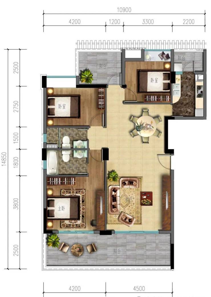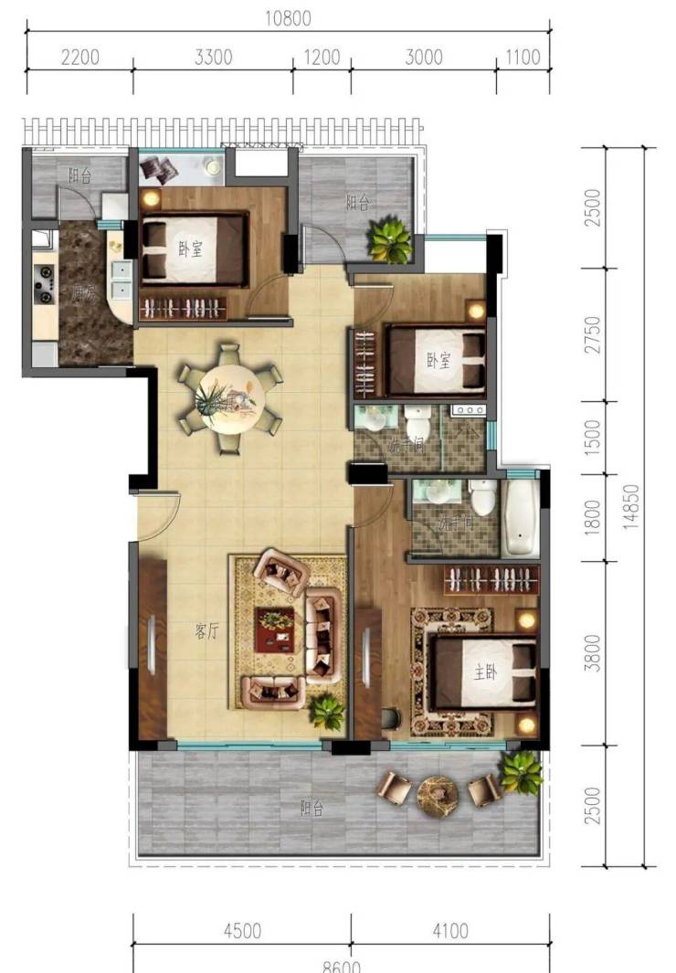 建筑面积100-108㎡ 3房2厅2卫