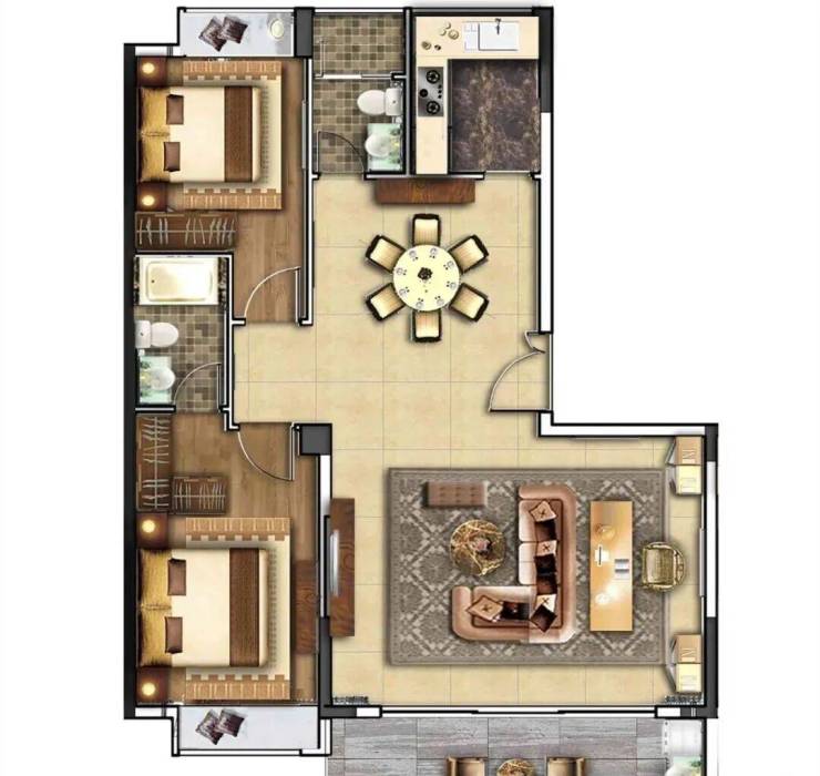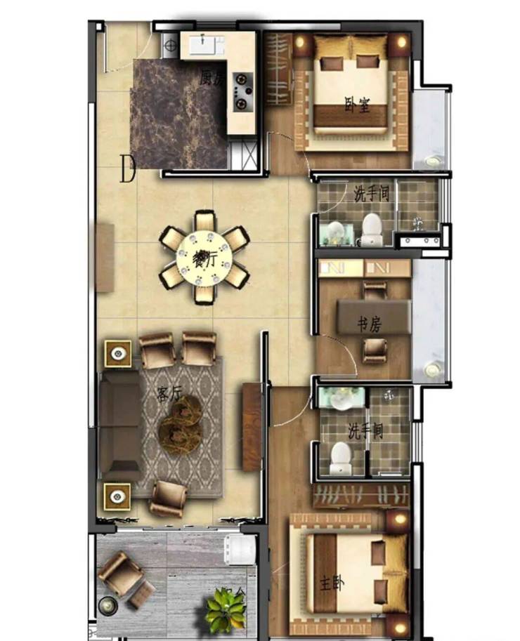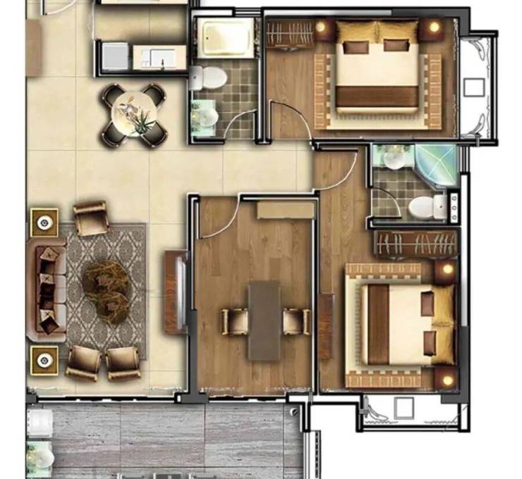 建筑面积约:130-138㎡ 三房两厅二卫(小四房)