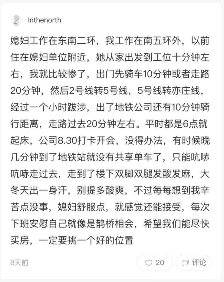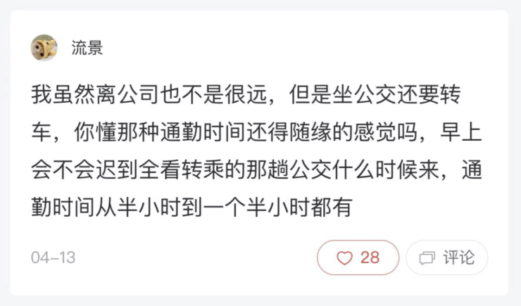 相反,对于交通不太便利的人来讲,“通勤”真是一把辛酸泪: