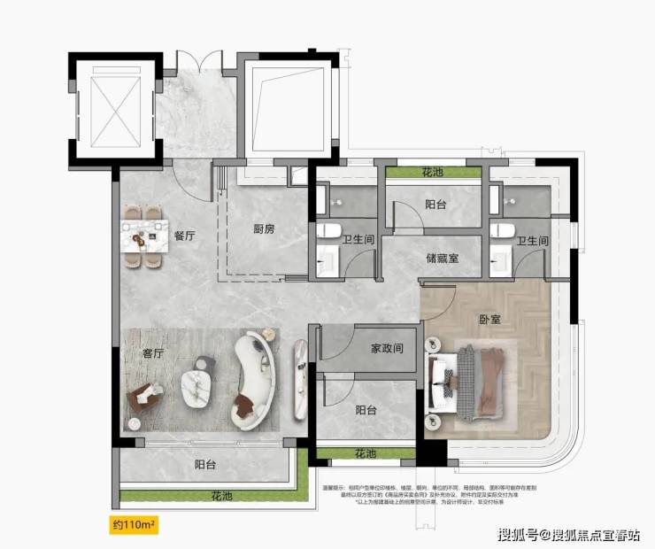 “宽幕视野” 南北通透双视野,主卧270°转角飘窗