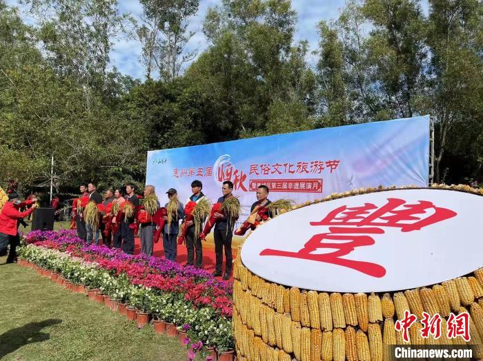 中新网惠州11月12日电 (记者 宋秀杰)11月12日,广东惠州第五届晒秋民俗文化旅游节暨第三届非遗展演月启动仪式在山里头农场举行,吸引了众多的粤港澳大湾区的客商与游客。