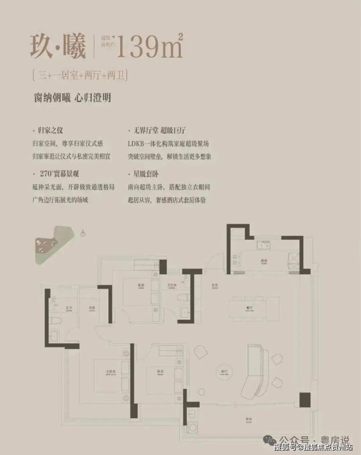 三、139㎡3+1房2卫:16-32层最优楼层5.74-5.95万/㎡,总价不到830万,就可以买到200方大户型的景观视野及空间享受,也是项目最稀缺、最靓的楼王景观单位,全玖章最好的一条139!