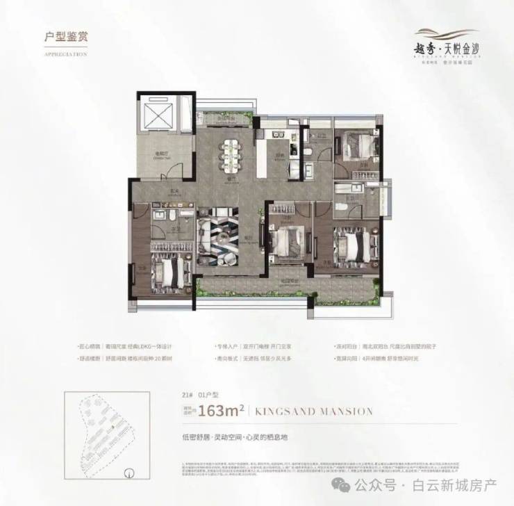 纯板式小高层:金沙洲在售唯一的低密小高层,一梯两户,楼间距达到1:1,享受豪宅般的舒适生活。