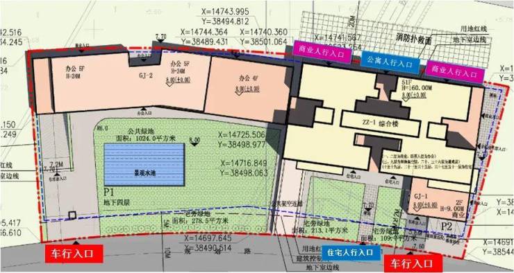 项目内车行动线及人行动线清晰区分,车行入口设置在项目的东侧和西侧,一进一出,互不干扰;住宅人行入口设置在项目南侧,公寓及商业的人行入口则设置在项目的北侧,最大限度区分人流动线,保障业主的安全。