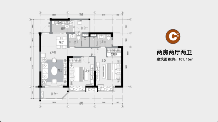C户型:101.16㎡|两房两厅两卫