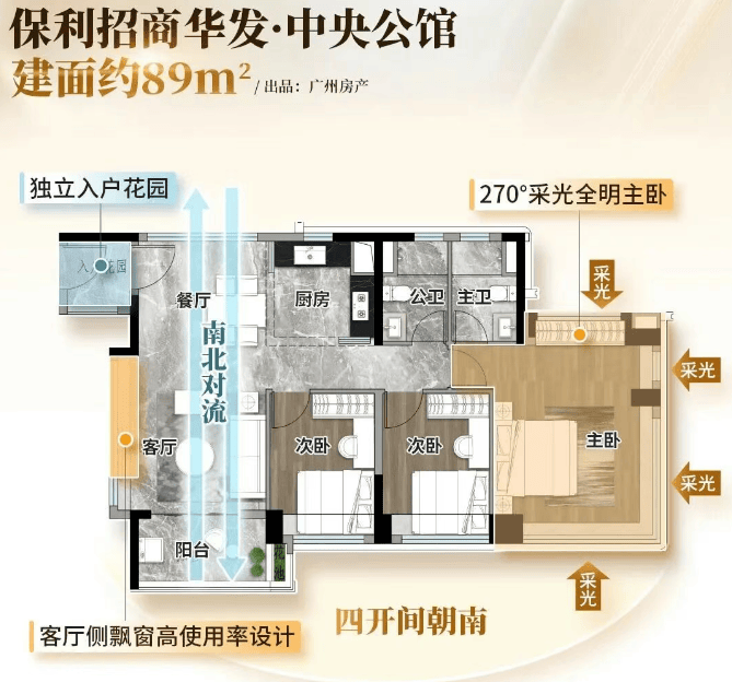 户型得房率接近100%,72㎡做三房、89㎡做实用三房,空间不浪费,对比同片区85%左右得房率的项目,同等面积多一个房间,性价比拉满。