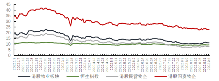 2022年以来,国资背景物业服务企业在资本市场的估值始终处于行业较高水平,显著高于同期恒生指数及民营企业的表现。2022年1月1日-9月6日,国资企业市盈率均值约为30.14倍,同期港股物业板块整体市盈率均值约为15.40倍,恒生指数市盈率均值约为9.99倍,民营企业市盈率均值约为12.24倍。此外,在行业IPO节奏放缓后,国资企业在资本市场仍然保持着相对的活力,截至今年9月上旬,年内成功在港股上市的物业服务企业共5家,其中3家企业为国资背景企业。