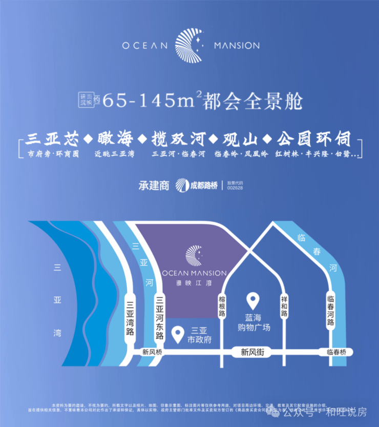 便捷交通:海映江湾项目位于河东路,北接迎宾路、南临鸿洲游艇码头,地处解放路与凤凰路之间。项目距三亚湾直线1.3公里,车程约6分钟可达三亚汽车站(约1.4公里),约13分钟至大东海旅游区(5公里),37分钟抵凤凰机场(14公里),40分钟达海棠湾(26公里)
