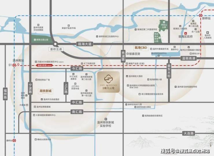 占位瓯海CBD与高铁新城交汇处,依托高铁新城发展的磅礴势能,TOD 城市旗舰综合体、⾼铁新城城市会客厅、新兴产业先导区等千亿重金配套加持,率先优享板块腾飞所带来的新中芯价值,实现生活的丰盈与价值的上涨。