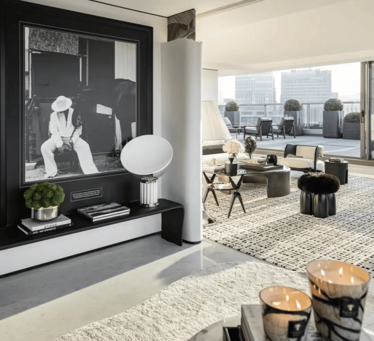 业主在家里一抬头便是以江景和都市为主题的巨幅油画!