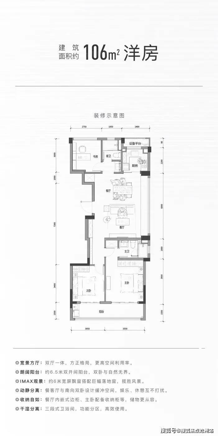 地铁越秀·星缦云渚 平层户型·建面/105㎡