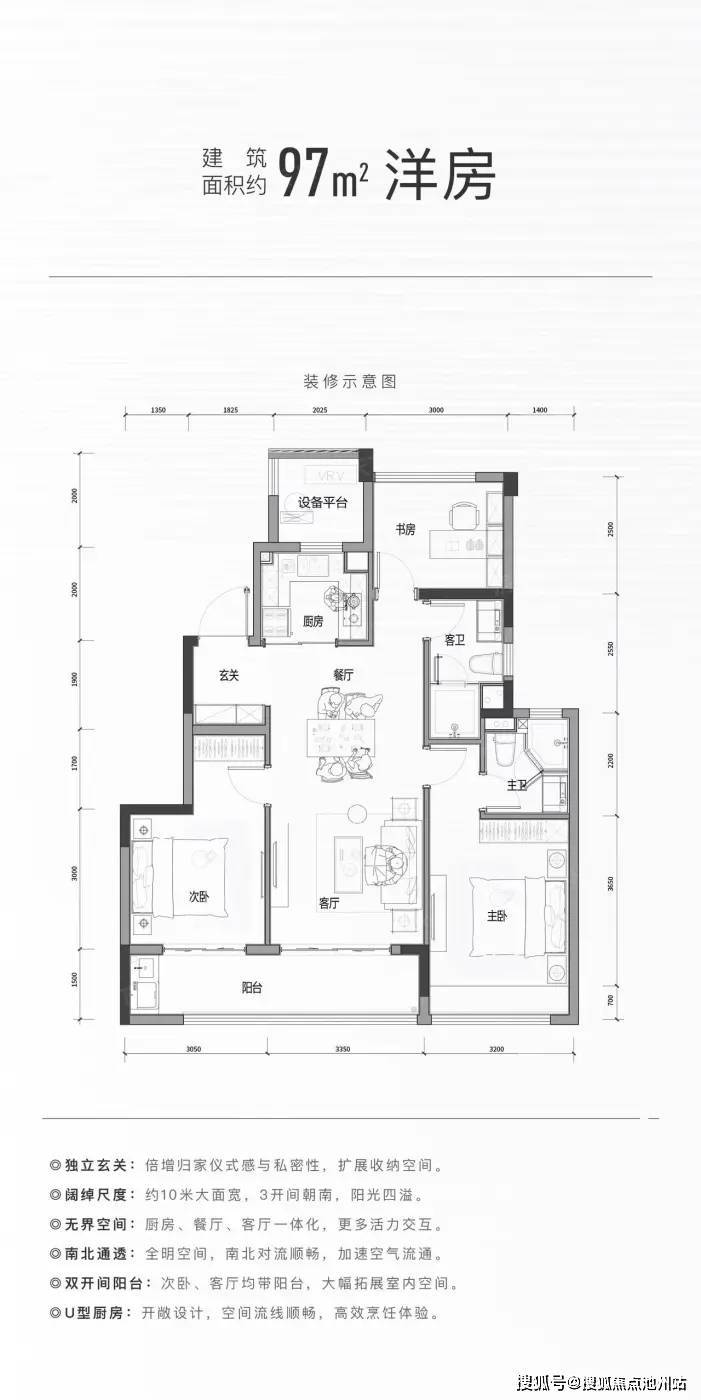 地铁越秀·星缦云渚 平层户型·建面/95㎡