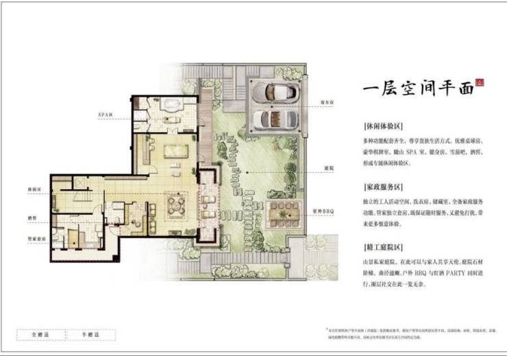 自带5星级酒店(包含国际会议中心、温泉、健身房、Ktv、红酒雪茄吧、游泳池、SPA馆等配套),另外酒店针对23席尊贵的业主提供管家式送餐(中西餐都有)以及高端、新鲜食材(例如:三文鱼、金枪鱼、北极贝等)的配送;
