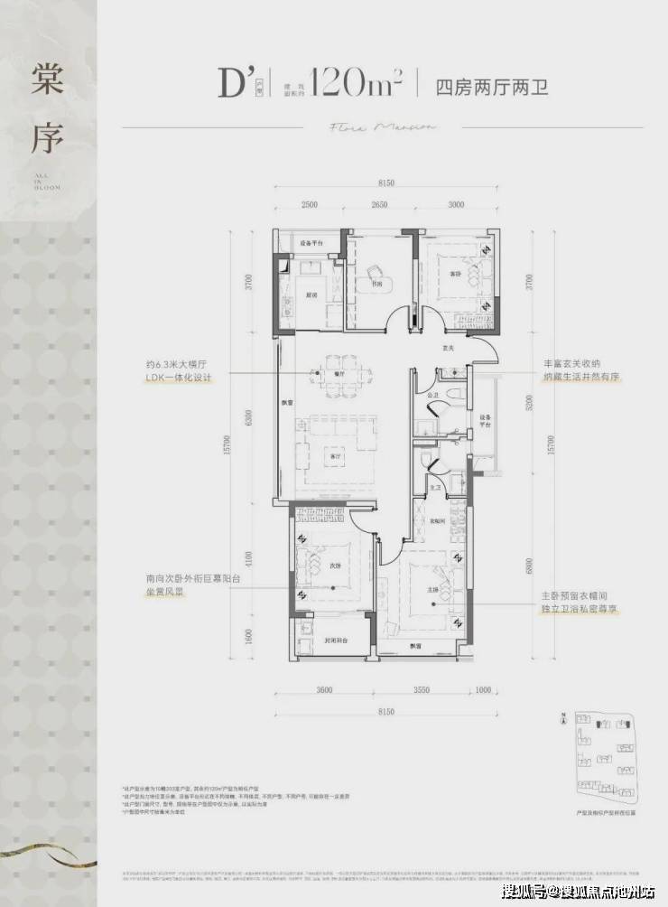 同时,双厅一体化,铺展约6.3米大飘窗,不浪费一点过道,增加了不少家人社交共融场景;南向套房主卧,独立卫浴间+飘窗,居住舒适度更进一步。