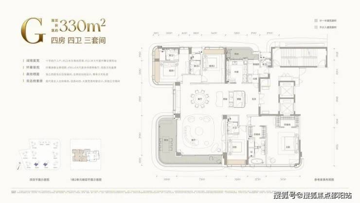 245–330㎡:四房三套房(双套房 + 独立书房)。
