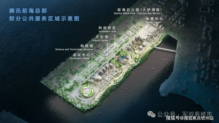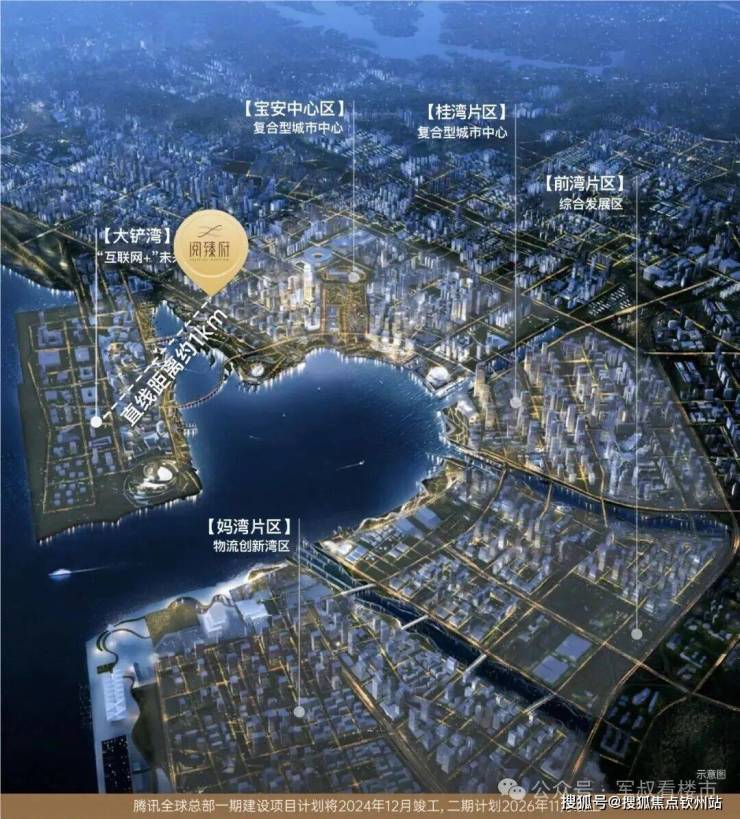 其中,建面约200万平、预计容纳7.5万名行业顶尖人才的企鹅岛,正处于火热建设中。阅臻府和腾讯全球总部直线距离仅约1km。