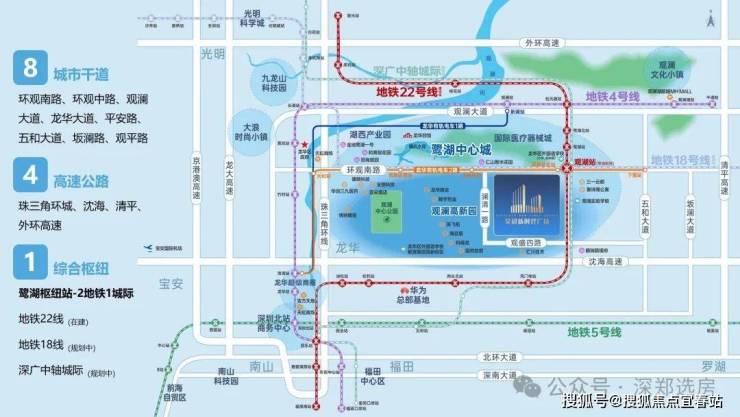 鹭湖枢纽——2地铁1城际1电车交汇,与深圳北站形成一南一北双枢纽