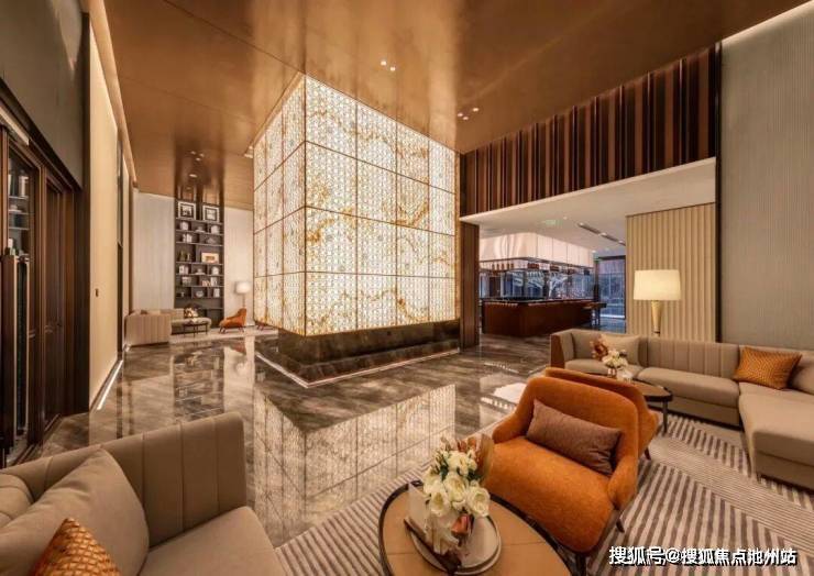 归家的第一步,即是与城市文脉的对话。约138米环桥不仅是连接南北的动线枢纽,更以“圆融和谐”的玉器哲思与对标公元138年建县史的建筑尺度。前行至北区大门,宽约60米、高约6米的北区入户门头,迎面左右各布置3根爱马仕灰奢石梭形柱,与金属背景一起构成了传统文化里“金玉满堂”的美好寓意。