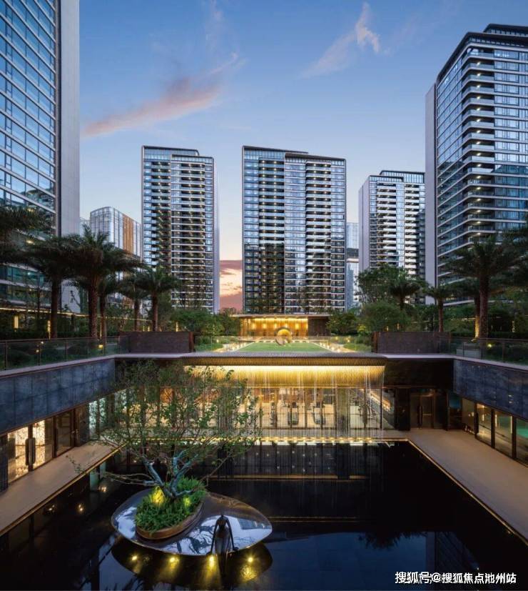 行至园区中央,糅合了庄园灵感、曼谷四季酒店以及温州在地文化,打造的约万方的中央艺术花园,将下沉庭院、山水会客厅与第三重楼王庭院联成雅致中轴,共同铸就一件可游可赏的立体艺术品。