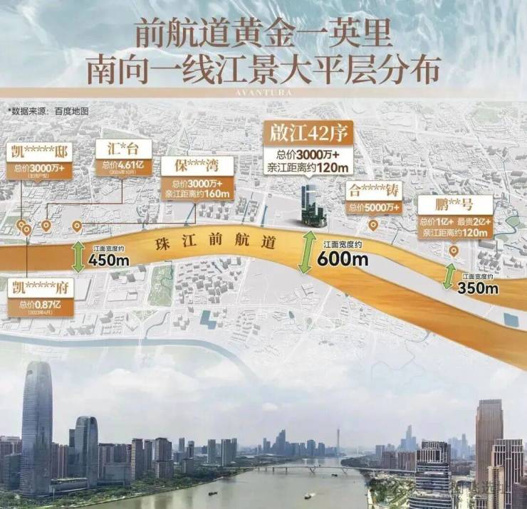 •一线滨江,南向瞰江,约110米亲江距离,一览约5000米的珠江两岸壮阔画卷