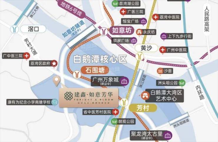 · 自驾出行:紧邻芳村大道,通过洲头咀隧道、内环路等快速到达天河、越秀等老城区,未来如意坊二期高架道路建成后,自驾更顺畅;