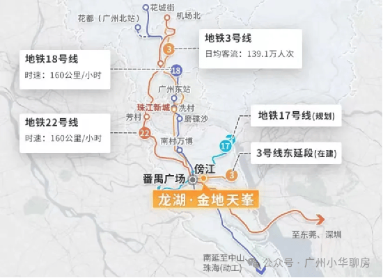 项目位于番禺广场板块,家楼下就是3号线地铁东延段傍江站,现在东延线的工程进度已经达到99%,距离开通时间不远啦