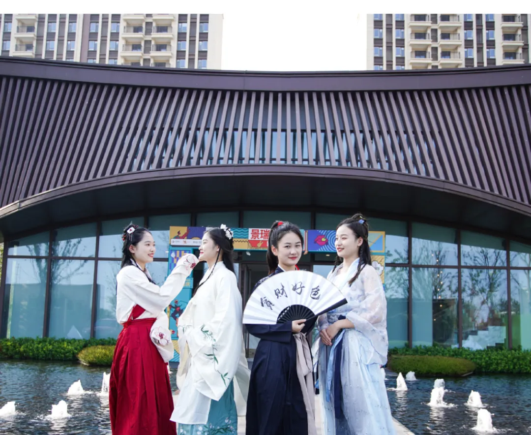 国潮风元素席卷了活动现场,而年轻人们身着景瑞地产现场提供的各式汉服,或由摄影师拍照打卡,或三俩聚在一起品评传统下午茶。如果说,以前能收割消费者的是各种各样的“洋”概念,那么现在要打动消费者,显然需要尊重这一代的年轻人对于国风的喜爱。