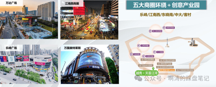 自身配建建面约3万㎡岭南商旅商业MALL,以及建面约4000㎡特色商业街,越秀地产X岭南商旅,双国企联合打造;周边东晓南、江南西、乐峰等商圈