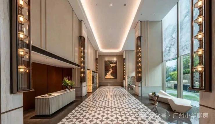 约8米挑空酒店风大堂,搭配奢石,沿袭香港豪宅理念,空间感极为气派。