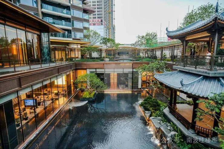 项目摒弃市面常见的围合式布局,以《千里江山图》的意境与岭南四大名园的风雅为底蕴,营筑立体化岭南园林。