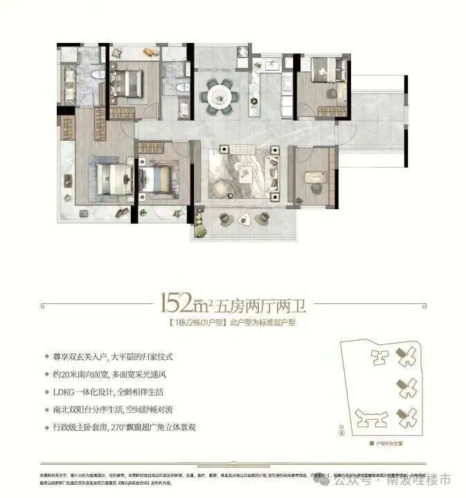 而建面约152㎡板房则更阔绰,实现南北双阳台+约20米超大面宽+独立玄关+行政级套房,尺度感可以媲美180+㎡户型。
