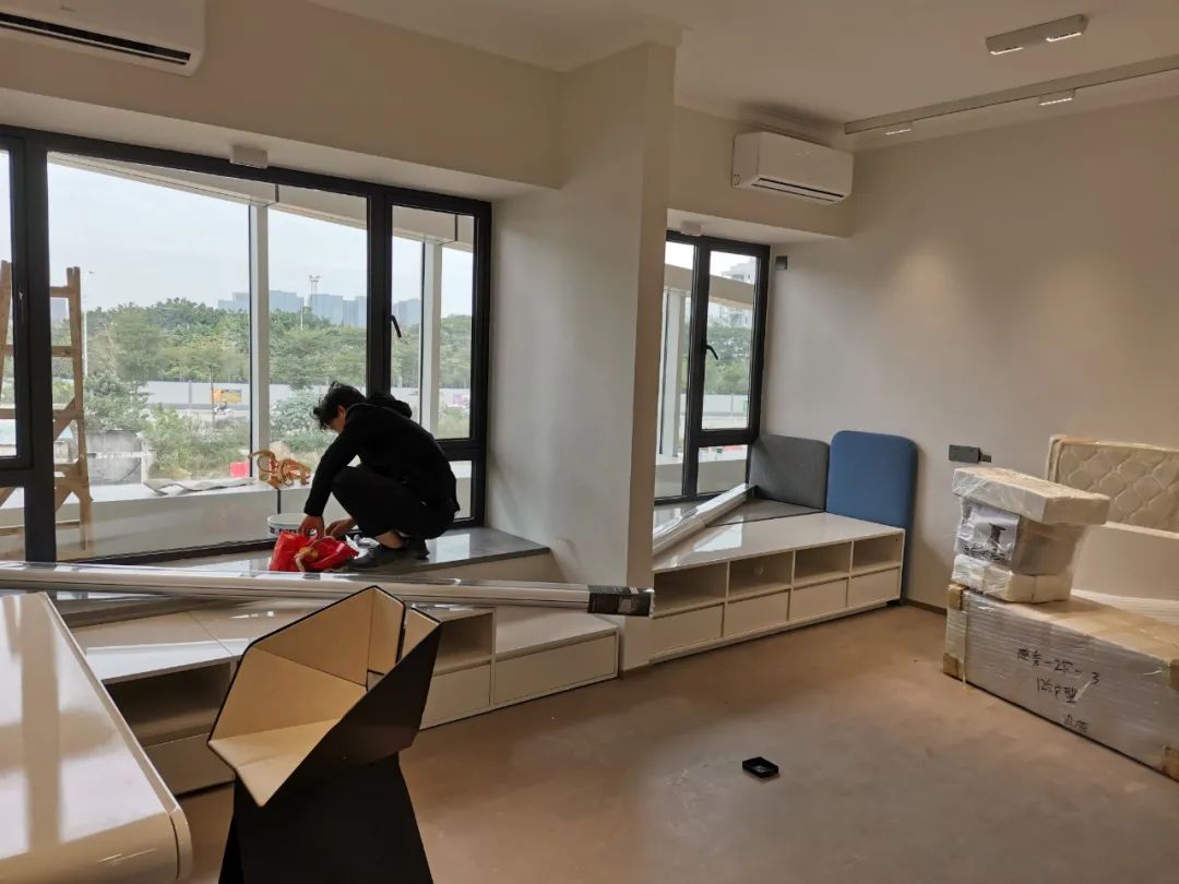 目前,项目营销中心暂时未对外开放,血拼哥也只是去看了个大概。现场所见,整个园林已修葺得差不多,售楼部也正在拆除外部桁架,样板房内,工人正在进行样板房的软装布置中,月底面市也不是毫无可能。