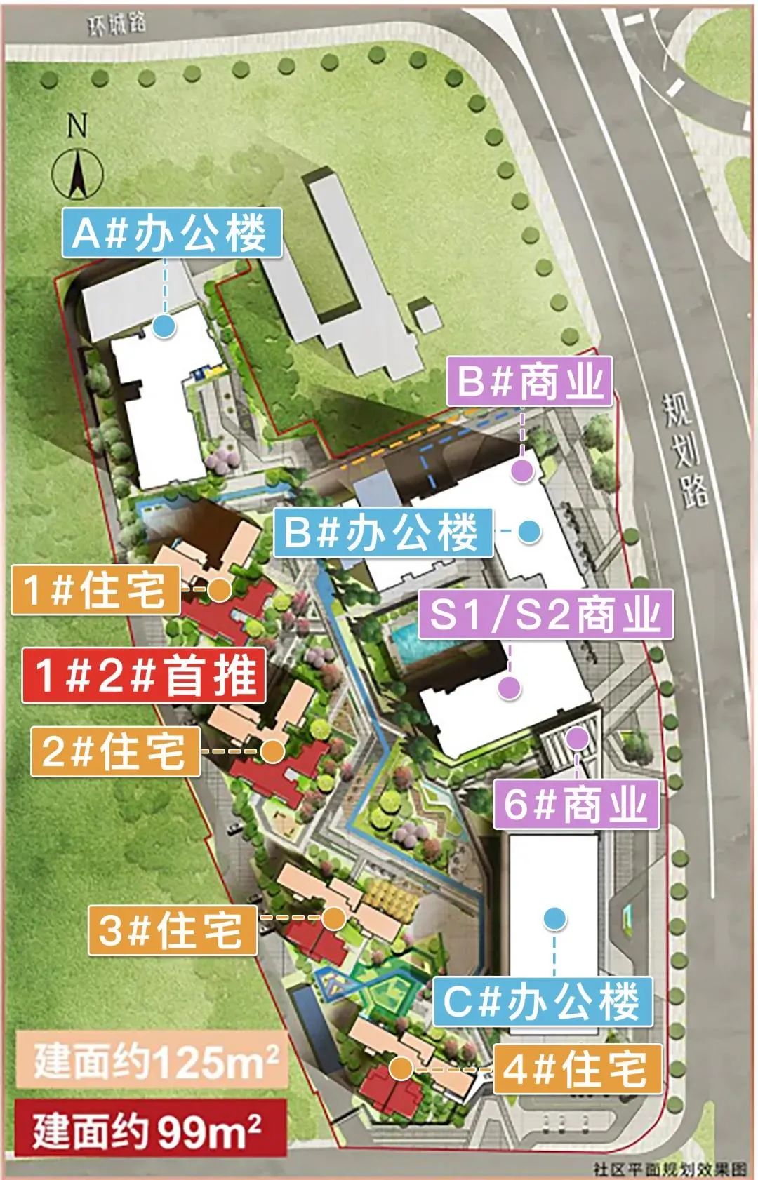 置业顾问介绍项目首推1#、2#住宅,产品涵盖建面约99㎡的“3+1”房,以及125㎡“4+1”房全南向户型,层高32层,均是两梯五户设计。
