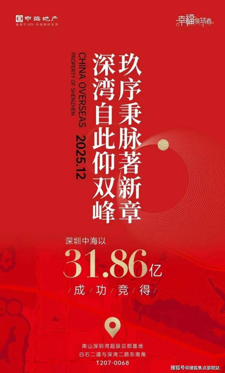 2025年12月8日,深圳湾超级总部基地T207-0068宗地拍卖落锤,中海地产以31.86亿元成功摘得,可售住宅楼面价高达约7.7万元/平方米。这宗与深湾玖序仅一路之隔的地块,标志着中海在深超总板块的再落一子。