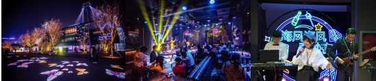 大屋檐造型、高颜值的海风·海风商业街,不仅让人有置身时尚之都的错觉,夜晚的奇妙夜派对,更是不容错过的重头戏。令人垂涎的各色烧烤,烟火气十足;跨越山海远道而来的比利时精酿啤酒,令人无限回味;和橄榄枝乐队老师,近距离互动嗨唱,将烦恼一饮而尽……