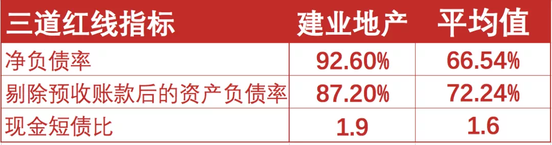 因为,建业虽然在今年有一定的偿债压力,但是总负债规模可控,过去并没有搞全国化、高杠杆的快速扩张,甚至连“三道红线”也只有“剔除预收款后的资产负债率”一项指标是红色的。